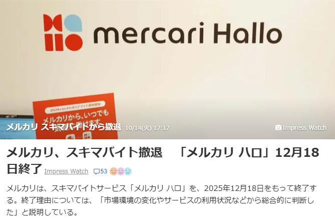 抜群の知名度を活かしてスポットワーク(スキマバイト)に参入した「メルカリ」が、