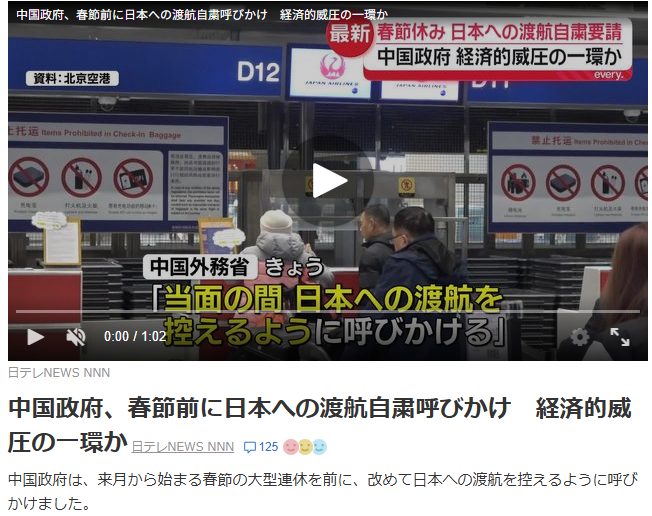 中国政府が日本への「渡航自粛」を呼び掛けているらしい。